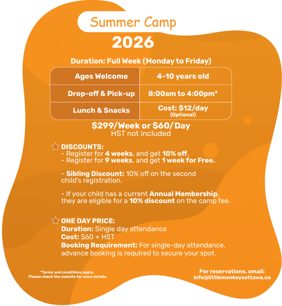 Our little Monkeys Camp is packed with excitement! Kids will enjoy games, sports, arts & crafts, team challenges, and themed activities that keep them active, creative, and smiling all day long. It’s the perfect place to make new friends, build confidence, and create unforgettable summer memories.